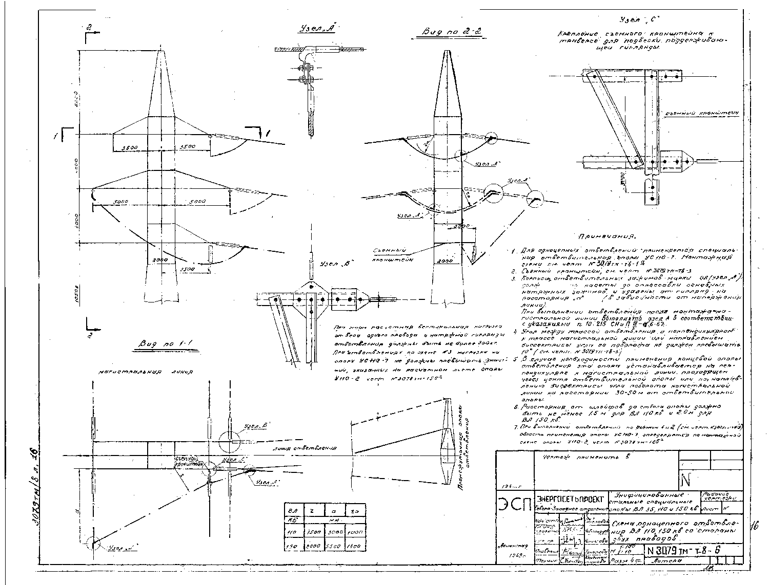 выбор проводов и расчёт провисаний;